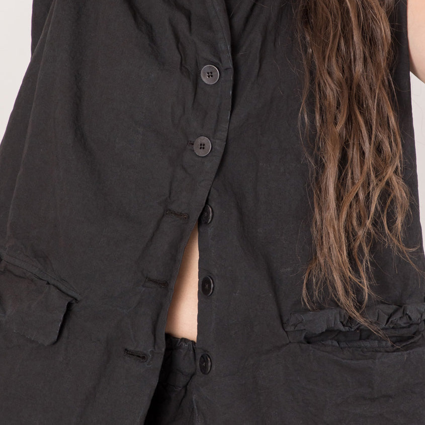 This classic Album di Famiglia shape is voluminous and flattering, featuring slender elbow-length sleeves and a slight notch collar. The fabric is a hard cotton. Available in BLACK Only.