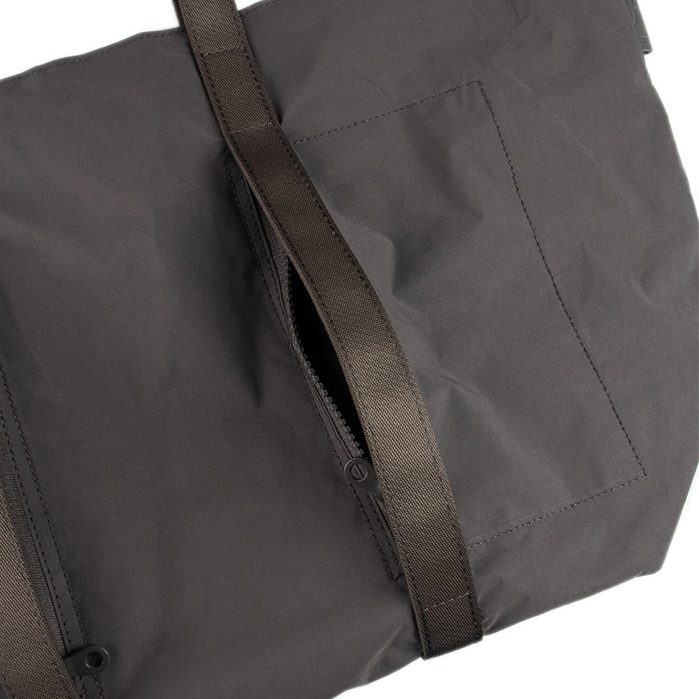 This tote features 2 shoulder straps and zips up fully. It features 2 interior compartments.