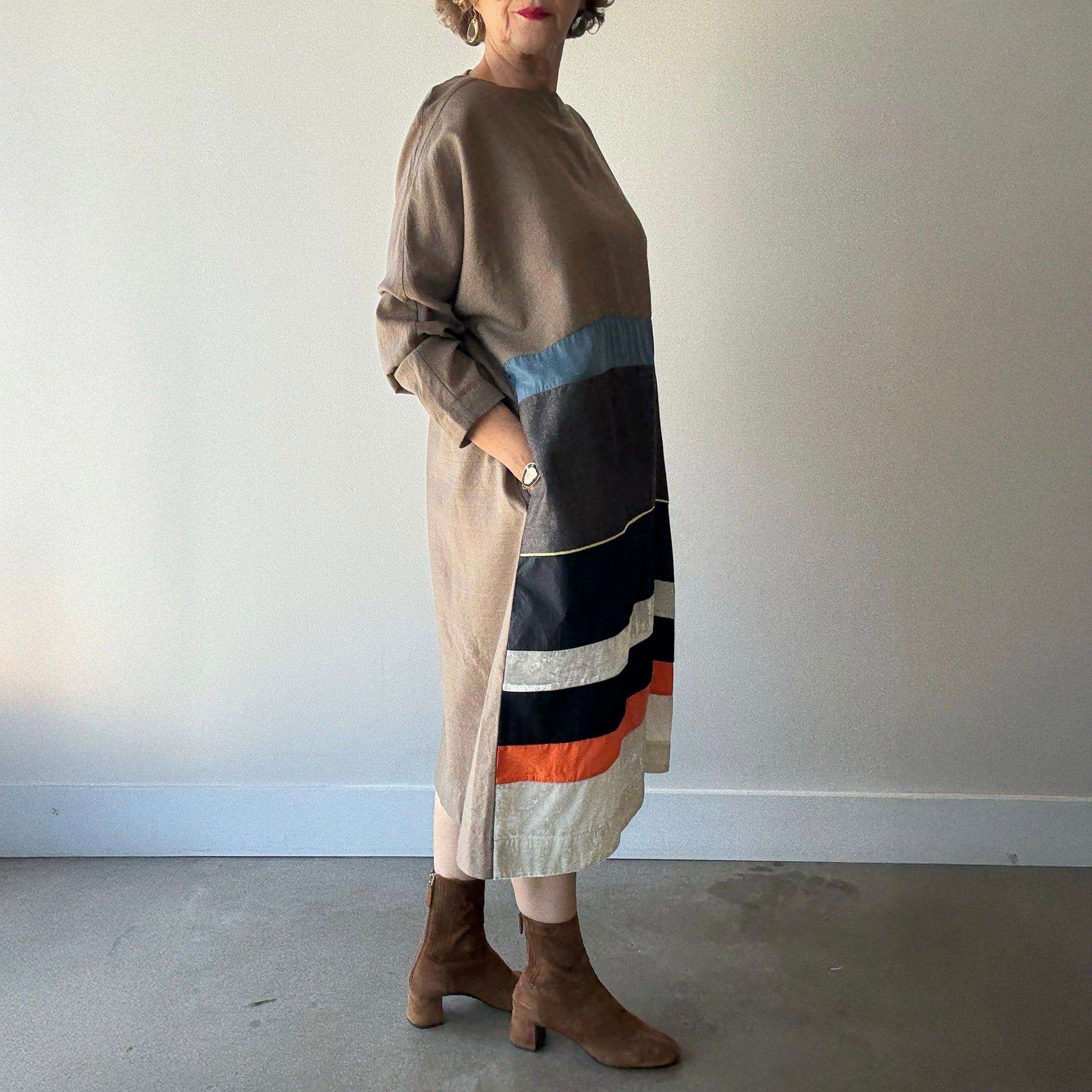 AODRESS was launched in 2009 after producing uniquely individual pieces using new cloth and old clothes collected from around the world. In 2012, they travelled to India to meet traditional artisan embroidery craftsmen and saw beautiful fabrics created by hand weaving. Seeing the beauty of the products, they realized the reality of lost manual work. While spending time in India, they produced dress lines that combine tradition and their sensibility. Hand-craftsmanship is very different from current mass products that are not made with the same love and pride for manufacturing, and with this in mind, AODRESS pieces are made to reflect an artistic beauty, while maintaining functional wearability.