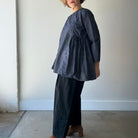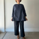 This top has a slightly square neckline and gathering on the sides. Easy and perfect.