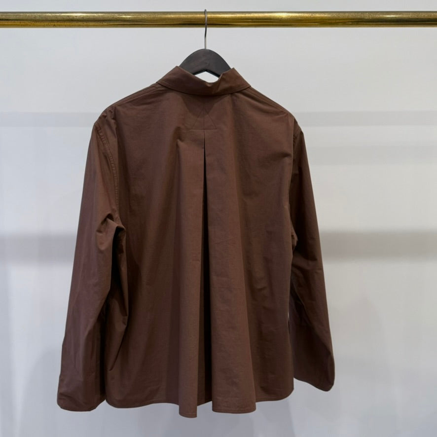 Long sleeve blouse with collar, concealed placket, pockets, and beautiful detailing in the back. It is woven and made of washed cotton poplin.