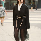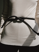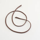 Thin rolled belt with circular ends that provide multiple variations of tying. The material is a vegetable tanned semi-aniline cowhide with smooth finish. Only Available in TOBACCO color.