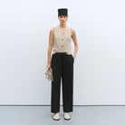 Light-weight and soft texture for this best seller. Detailed with a v-neck and front button fastening, it features a high neckline at the back for added style. The melange of natural and black creates a unique and beautiful texture. It can be styled on its own or layered during cooler months.