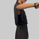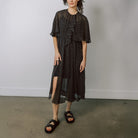 Original silk chiffon print with an asymmetrical silhouette design. 100% Silk.