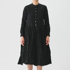 Style: pas de calais signature stand collar fitted crinkle dress with side pockets. New autumn colors inspired by the forest. Thick stitching detail.