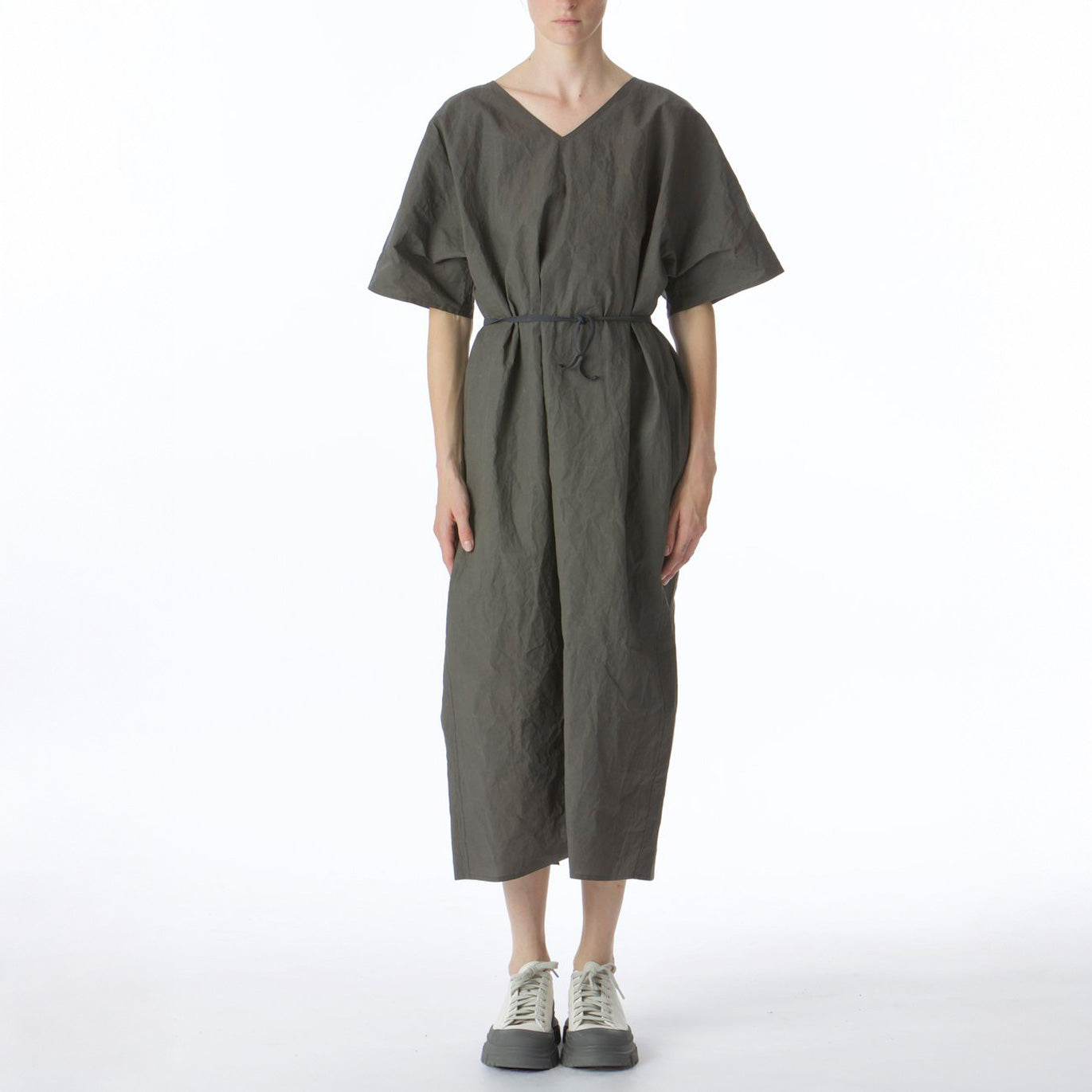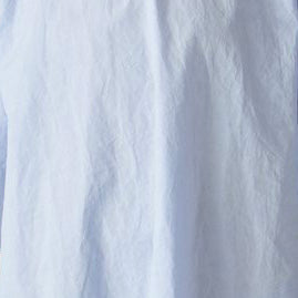 Short sleeve V-neck dress with two pockets in a glazed cotton fabric. Available ONLY in Sky Blue (as shown in the image of the swatch) with a white elastic tie. The image of the dress is for style purposes only.