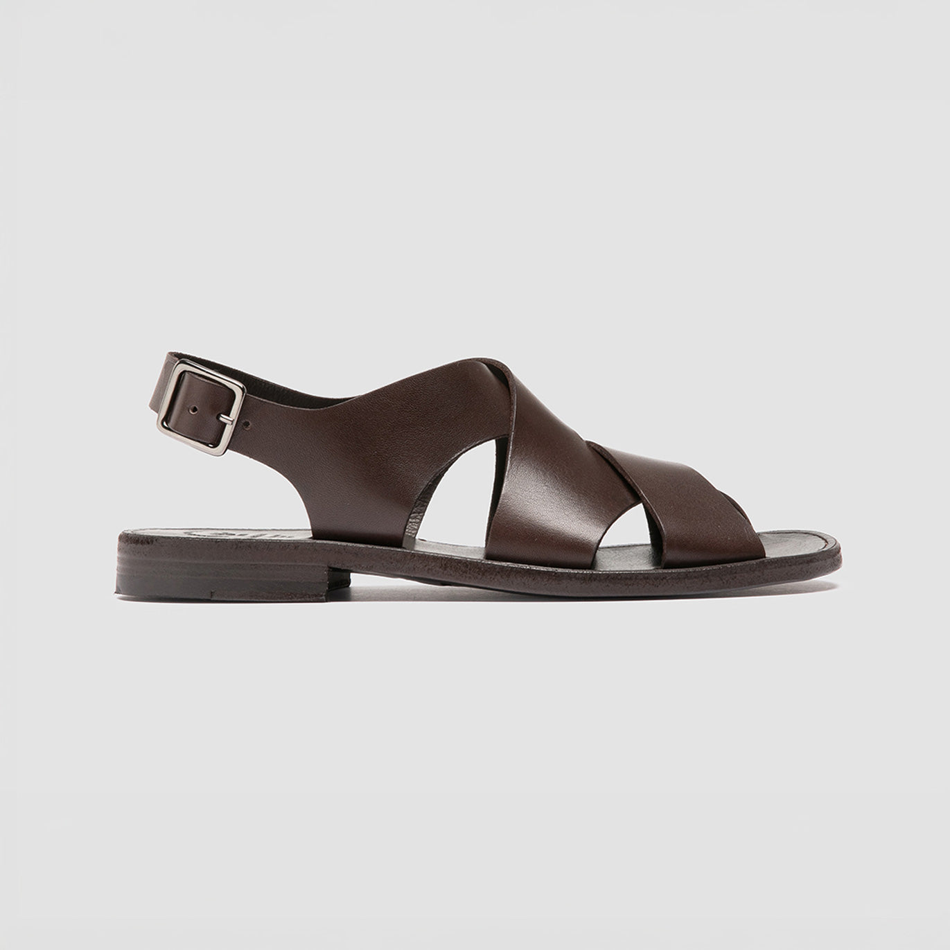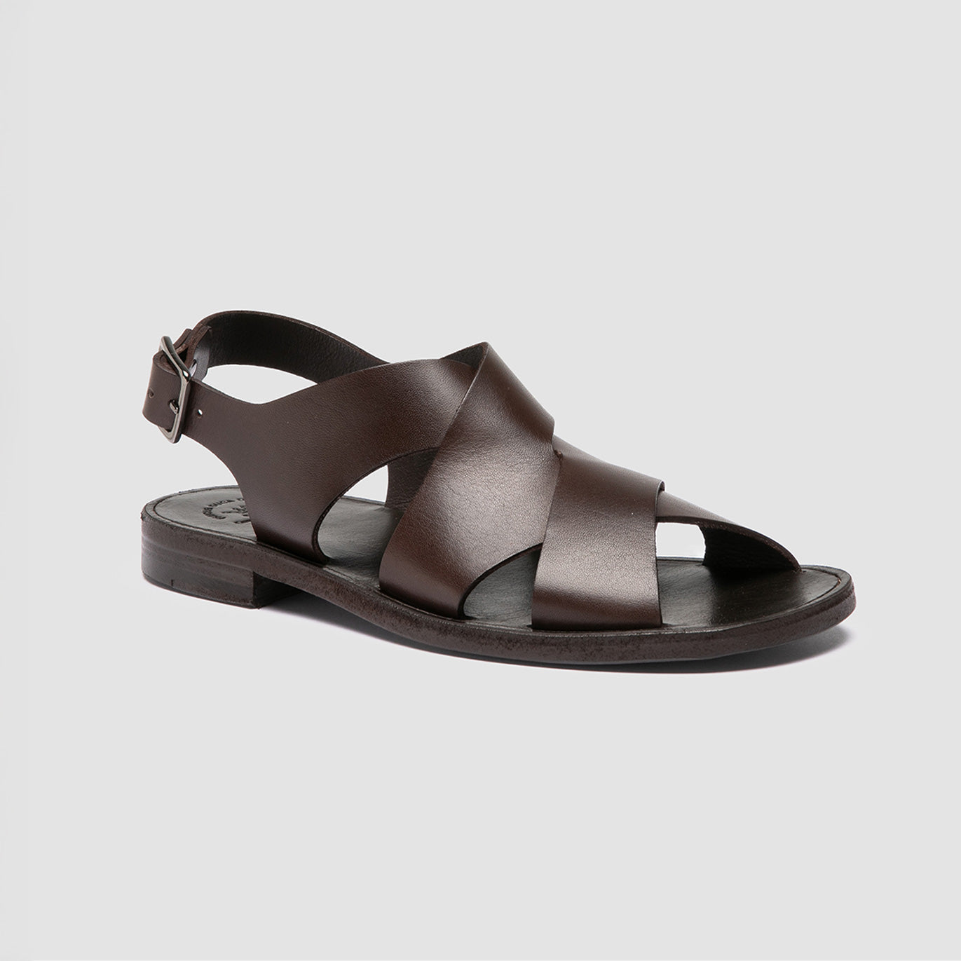 Handmade fisherman style leather sandals featuring an open-toe structure with crisscrossed straps and a back buckle closure.