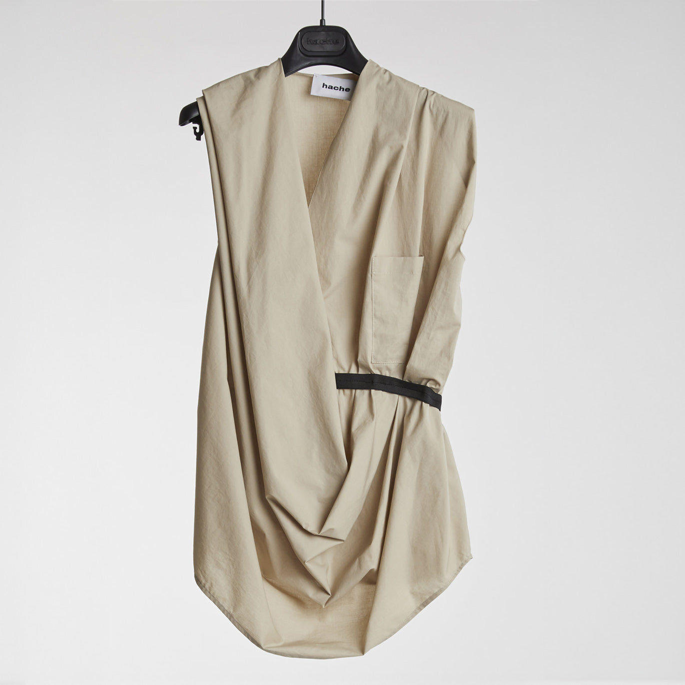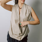 This architectural blouse is made of a light poplin. The elastic at the waist gives it a beautiful drape.