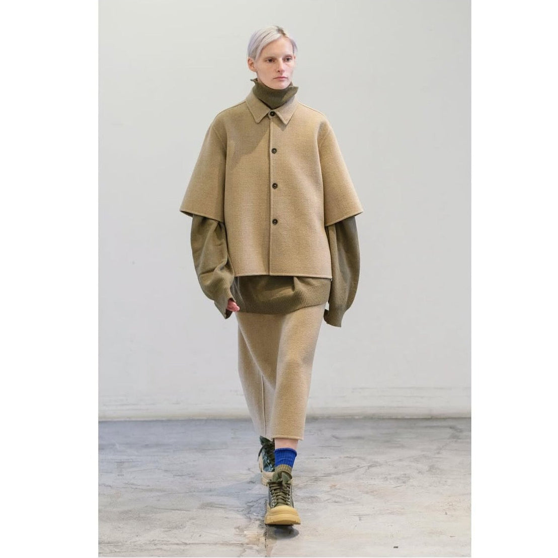 Double-faced boiled wool jacket short sleeve, button-front, shirt-style jacket classic collar and slightly in the back.