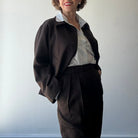 4 button, notch collar jacket with a boxy shape, but not at all oversized. Easy and elegant.