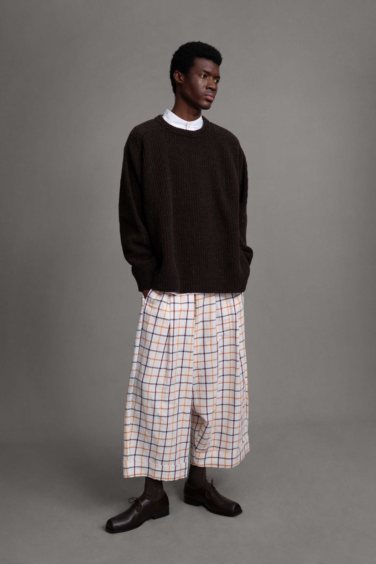 Made of Donegal yarn, naturally sustainable, herringbone knit sweater with a sculptural shaping on the sleeve creating volume and a rounded identifiably TOOGOOD silhouette.