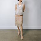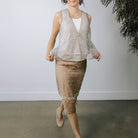 A couture-like series that conveys a sense of handcrafted artistry with all-over sequin embroidery. This vest is sheer in the front and works back to Leur Logette's Sleeveless top or anything else you already own. We love pairing it with denim.