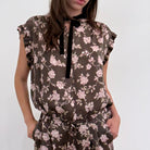 An original printed textile blouse inspired by old European wallpaper, made from crinkled cupro twill featuring a classic feel and velvet ribbons. Due to the cupro's smooth texture and moisture absorption properties, it doesn't cling to the skin. Designed to be a set look with the Room Flower Print Pant.