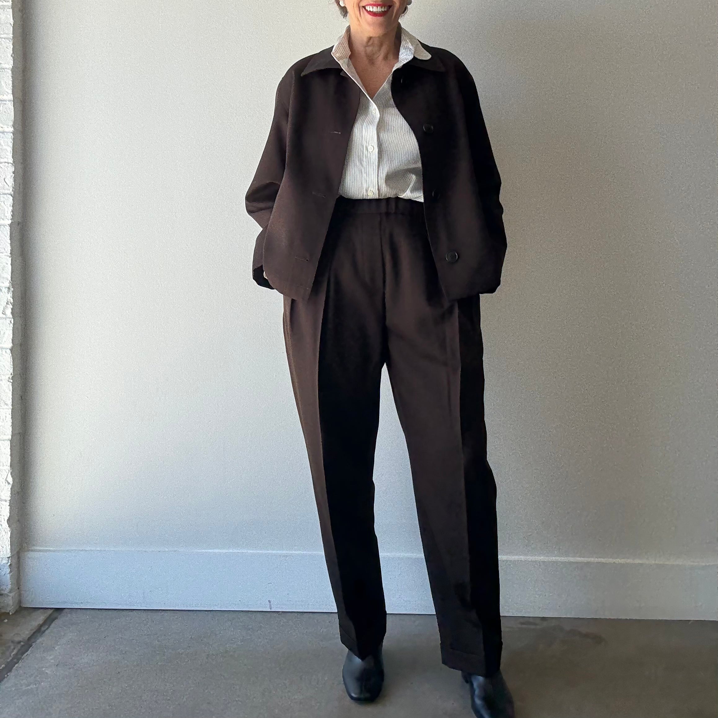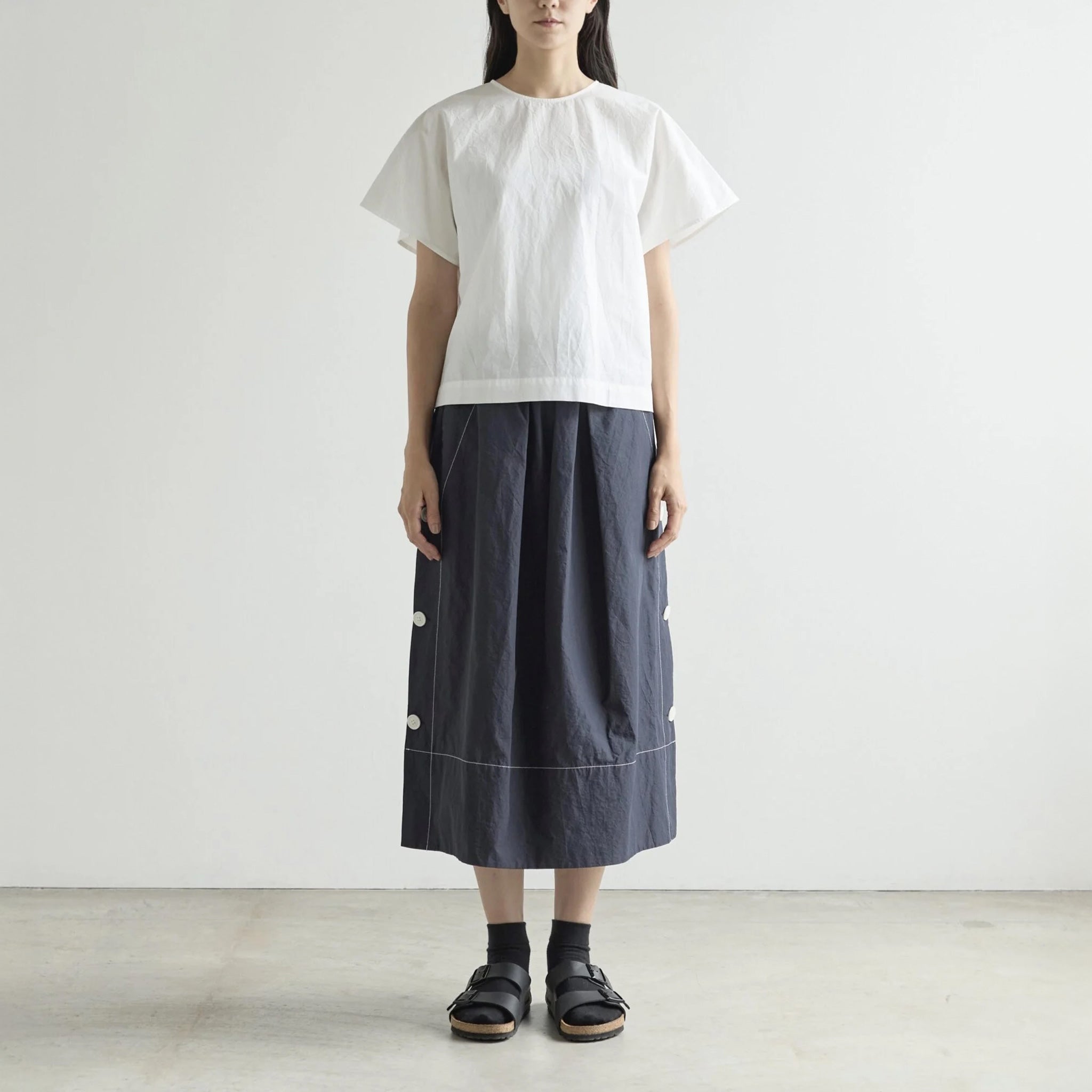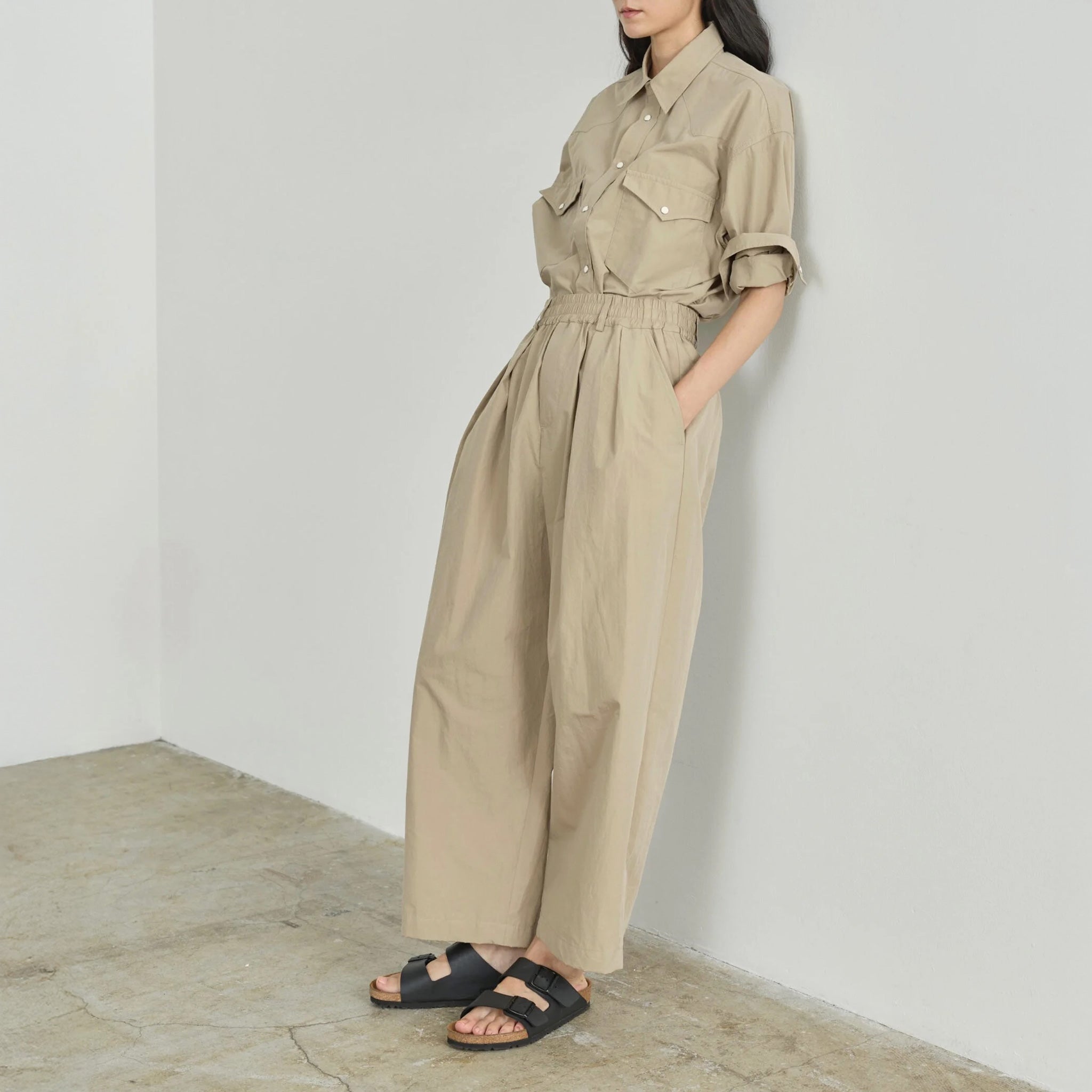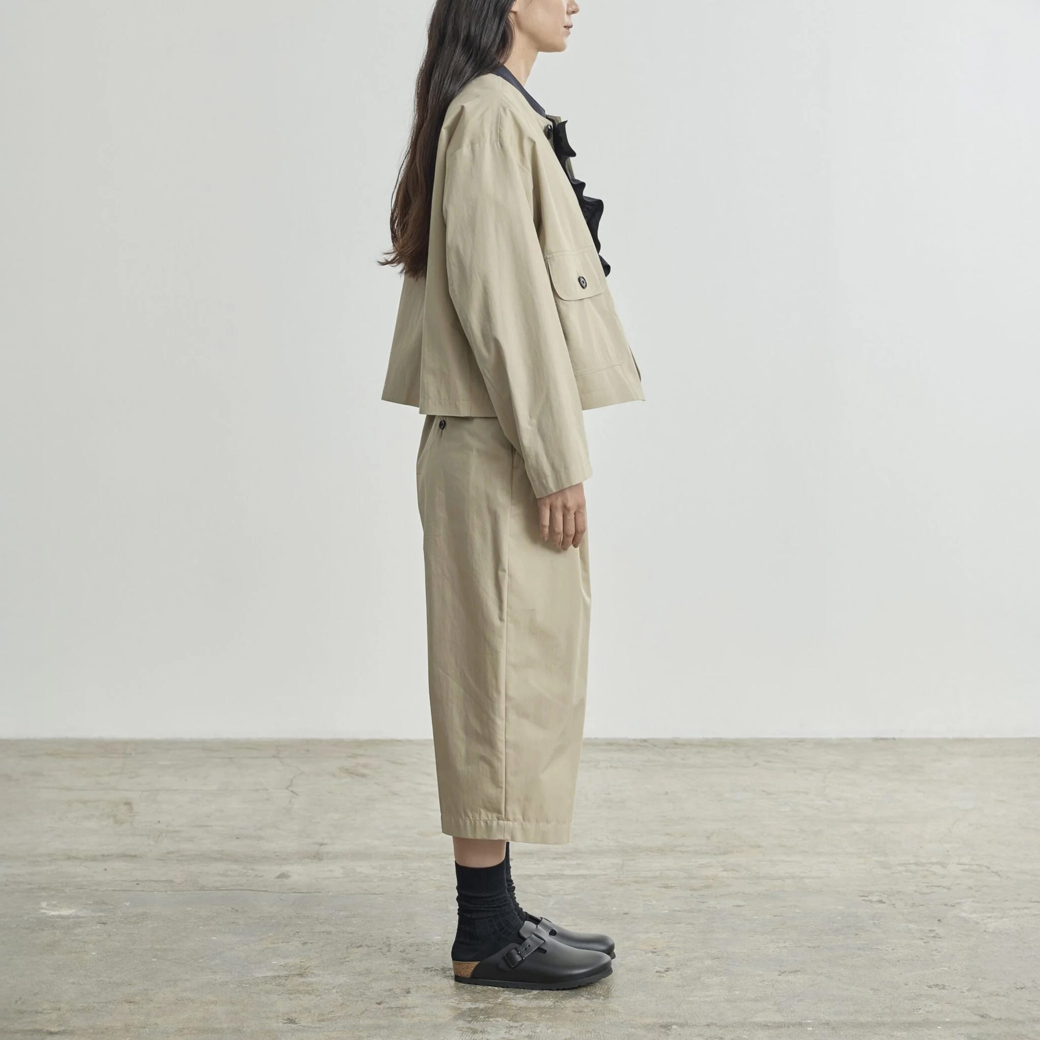 Originally starting as a menswear line in 2007, Nicholson & Nicholson transitioned into womenswear with a nod to menswear tailoring. Created by a husband-and-wife team Yuka and Yusuke Nakagawa - they have maintained a focus on high-quality fabrics and beautifully executed garments. The brand is known for its structured yet, easy lines with flattering, oversized silhouettes and tailored outerwear. Designed and sewn by experienced seamstresses and tailors in Osaka, Japan.