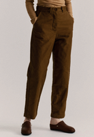 Pant in Faille, washed finish with button fly closure at the waist, belt loops, slash pockets, 1 patch pocket on the back.