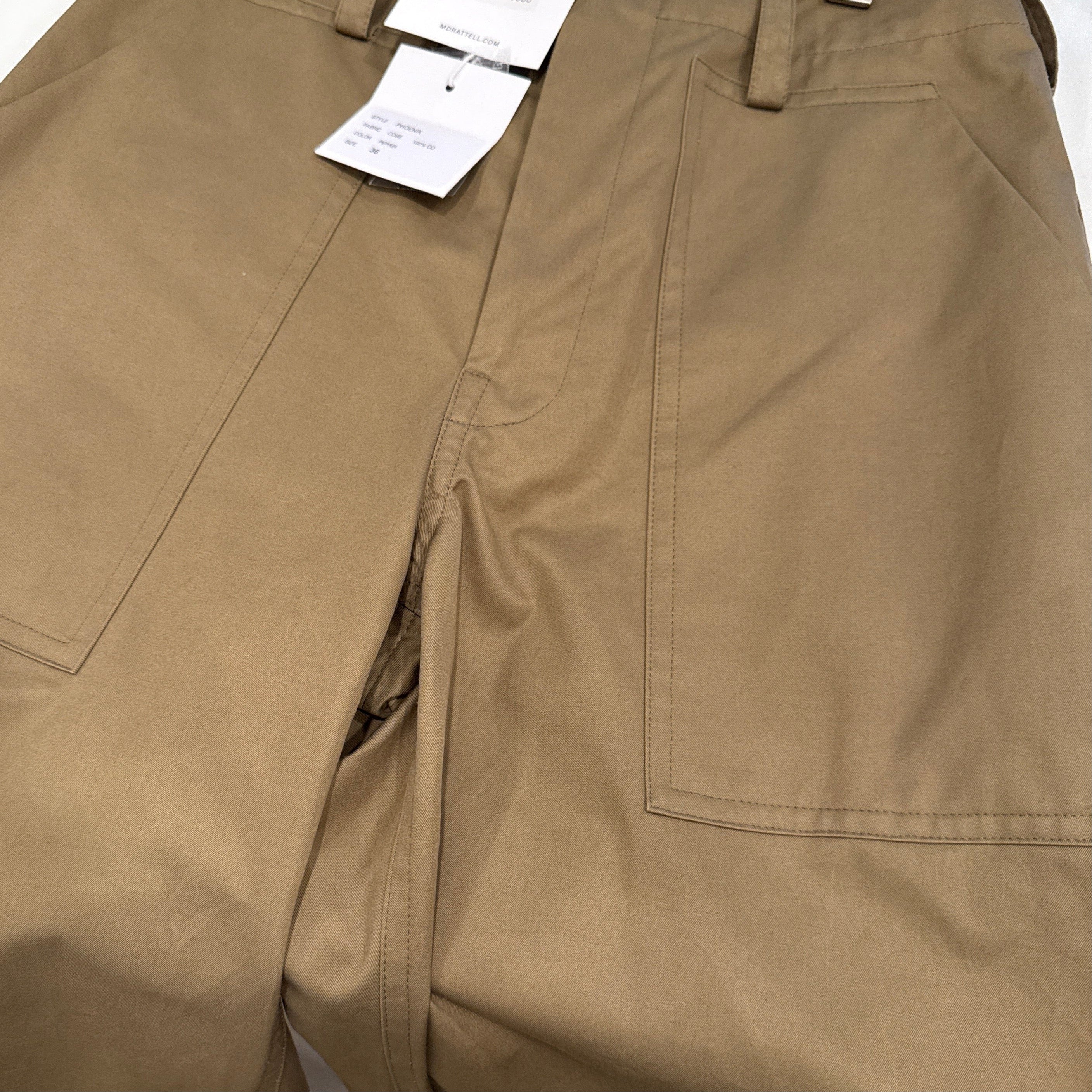 Cotton Gaberdine Barrel Leg pant with patch pockets.