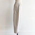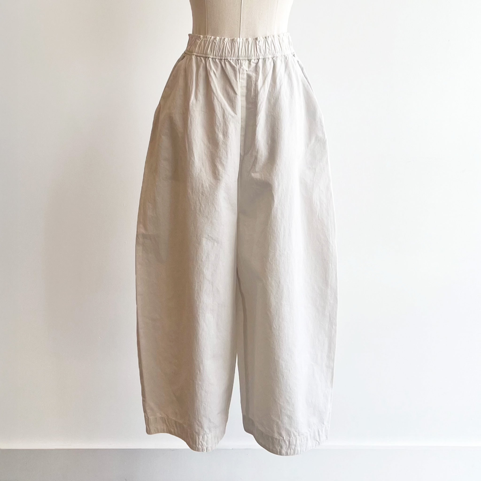 Voluminous cropped pants. New silhouette with slightly deep rise. Featuring an elastic waistband with drawstring for greater adjustability. Two front diagonal pockets and two large patch pocket on the right side of the back pants.