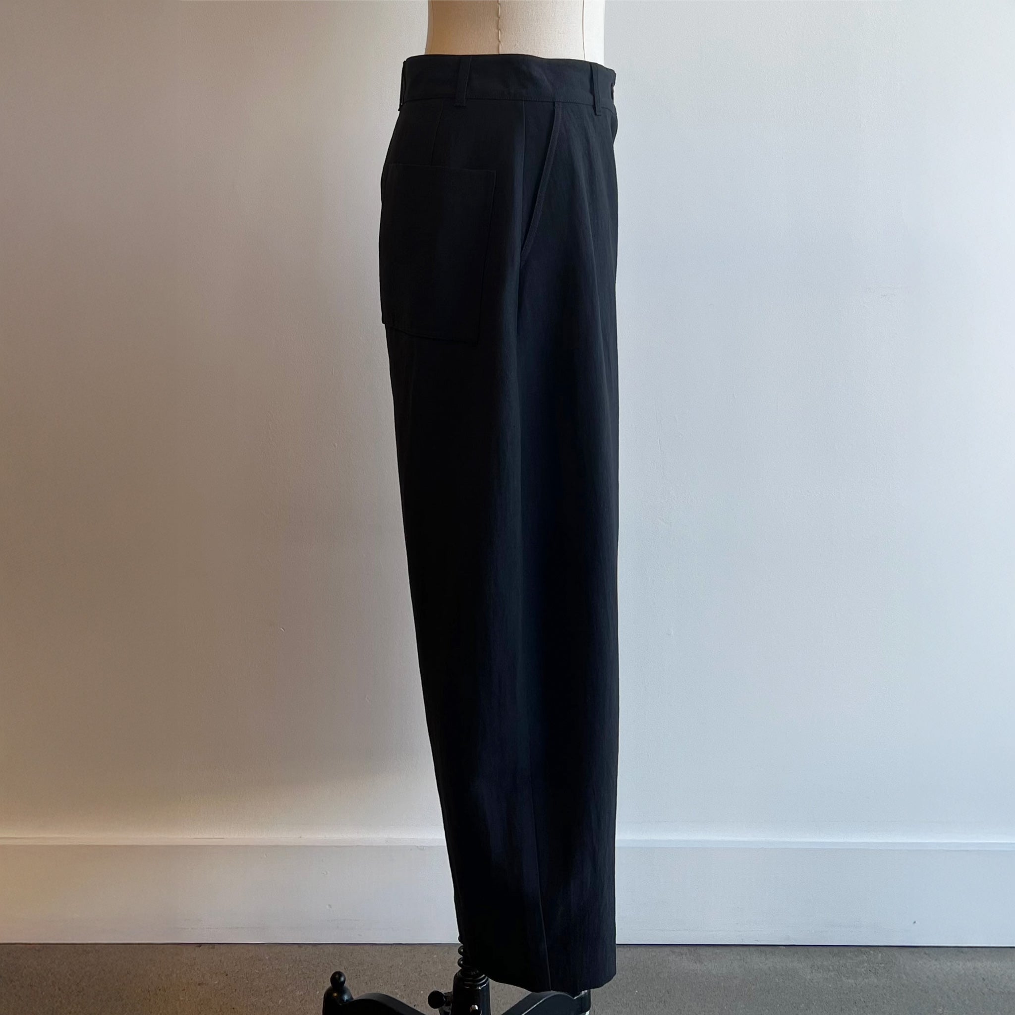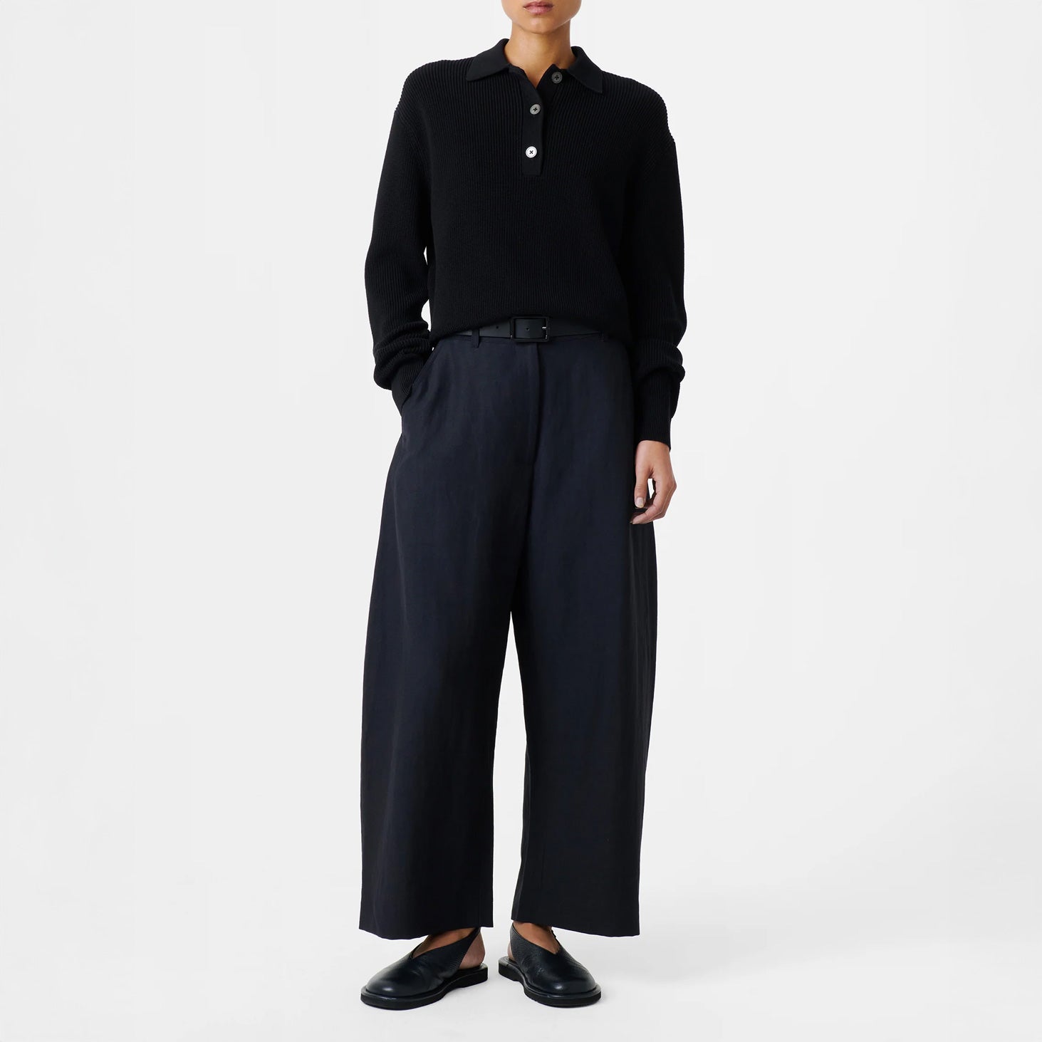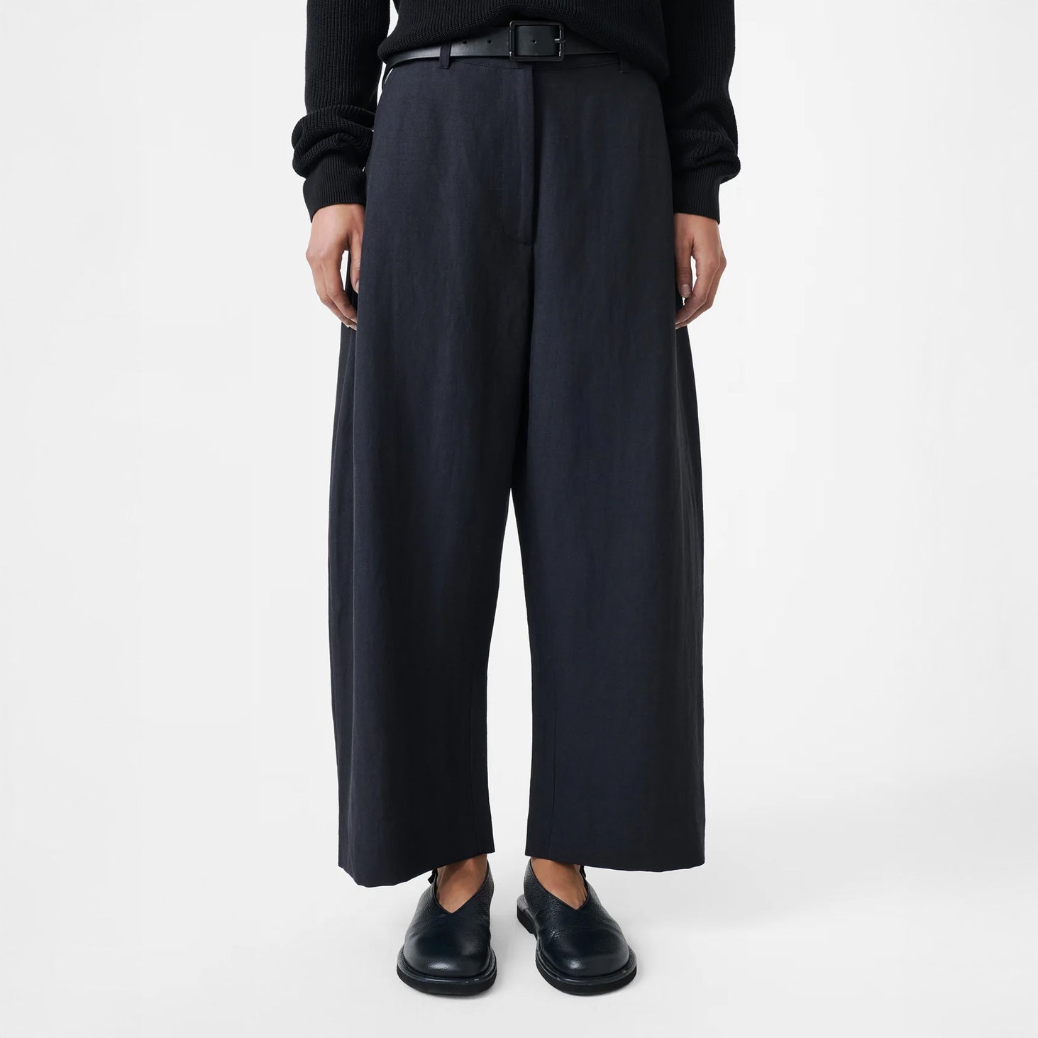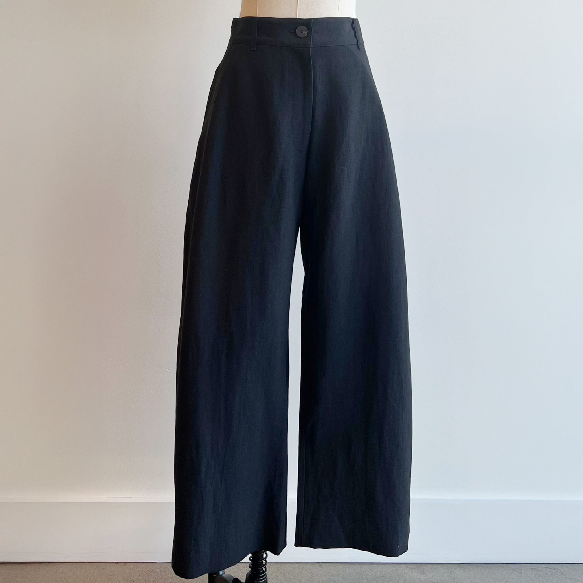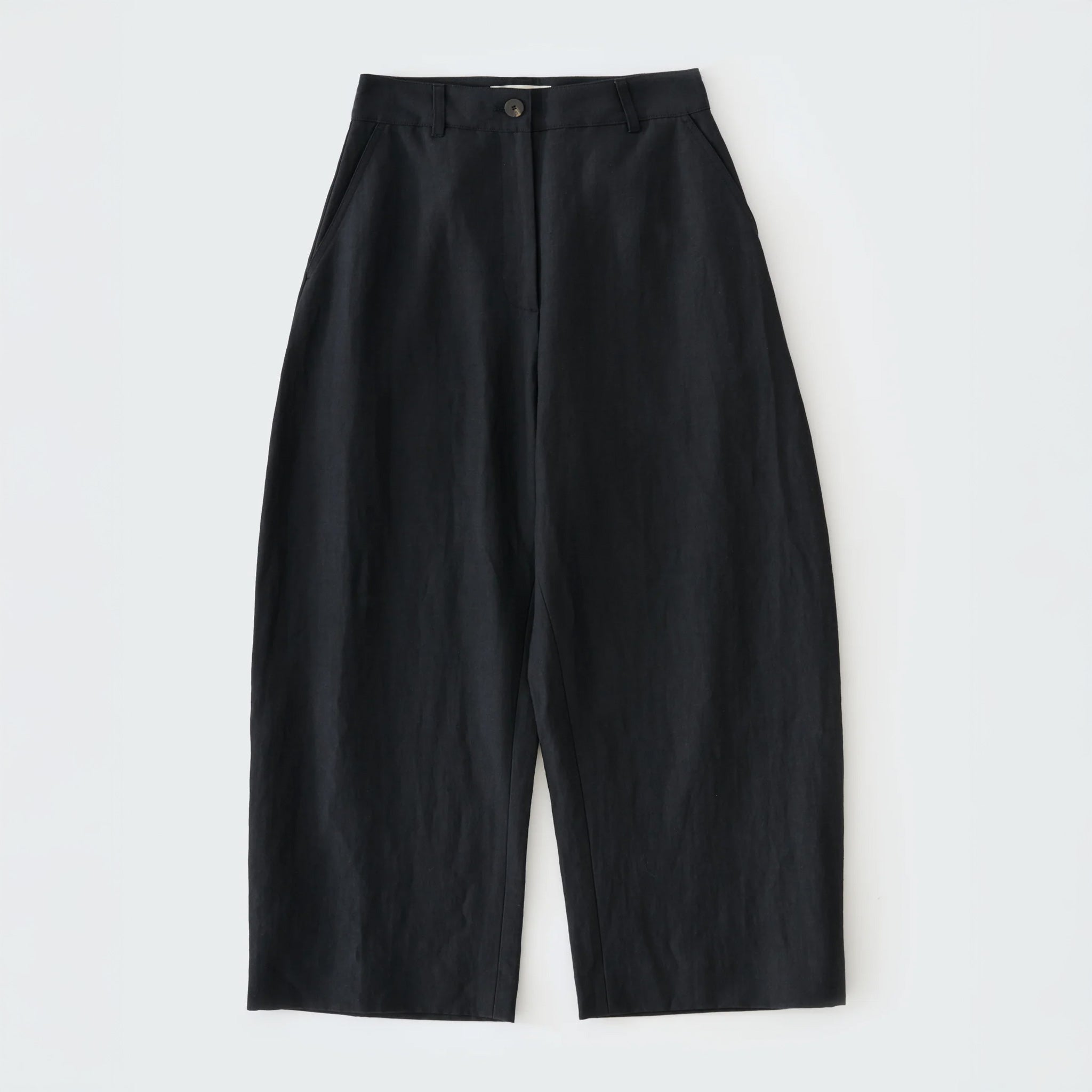 A true SN staple from season to season, the Chalco pants are cut wide and cropped, with a curved leg and dropped crotch. Here they are constructed from a linen and wool blend that’s woven with slubbed yarns for a subtle tactility.