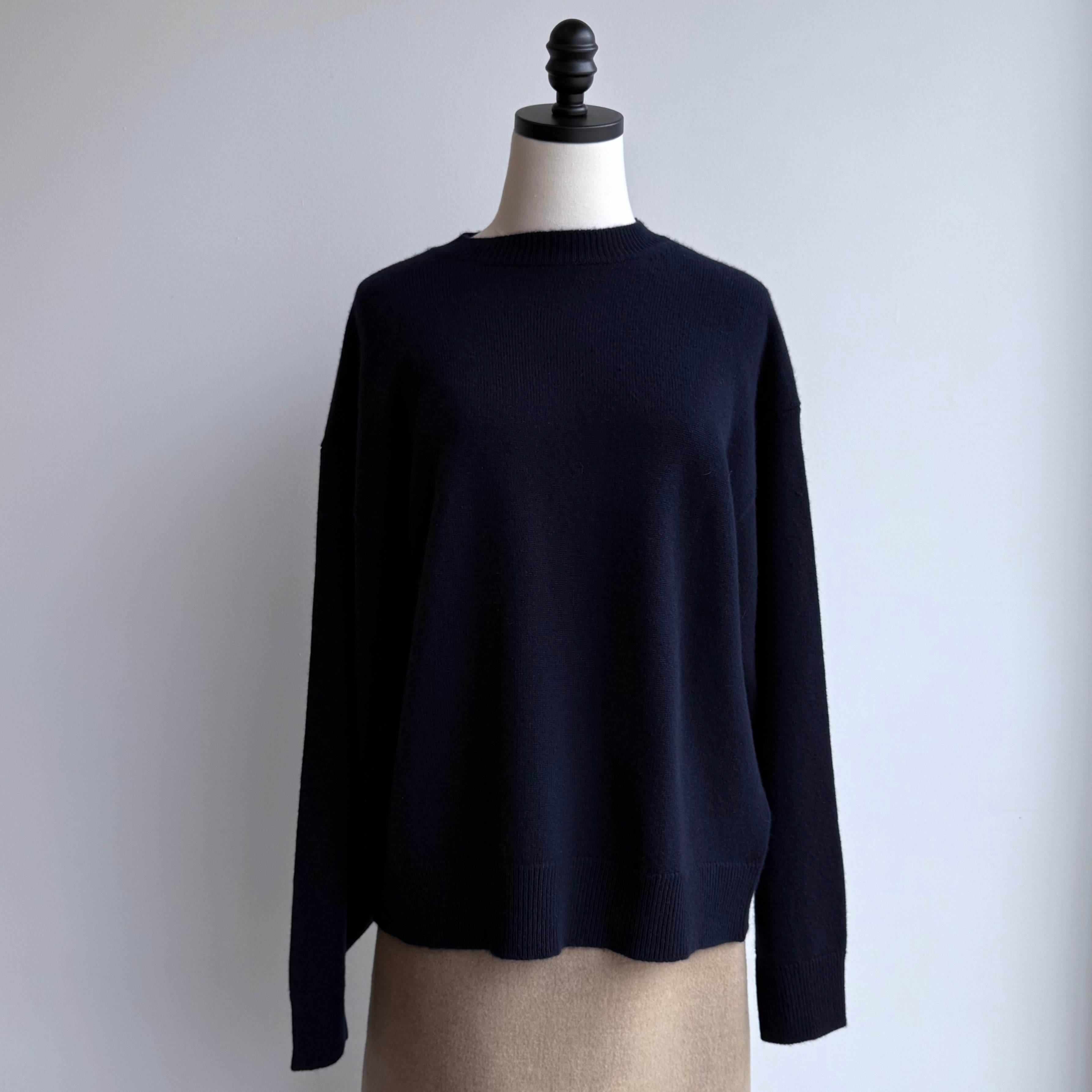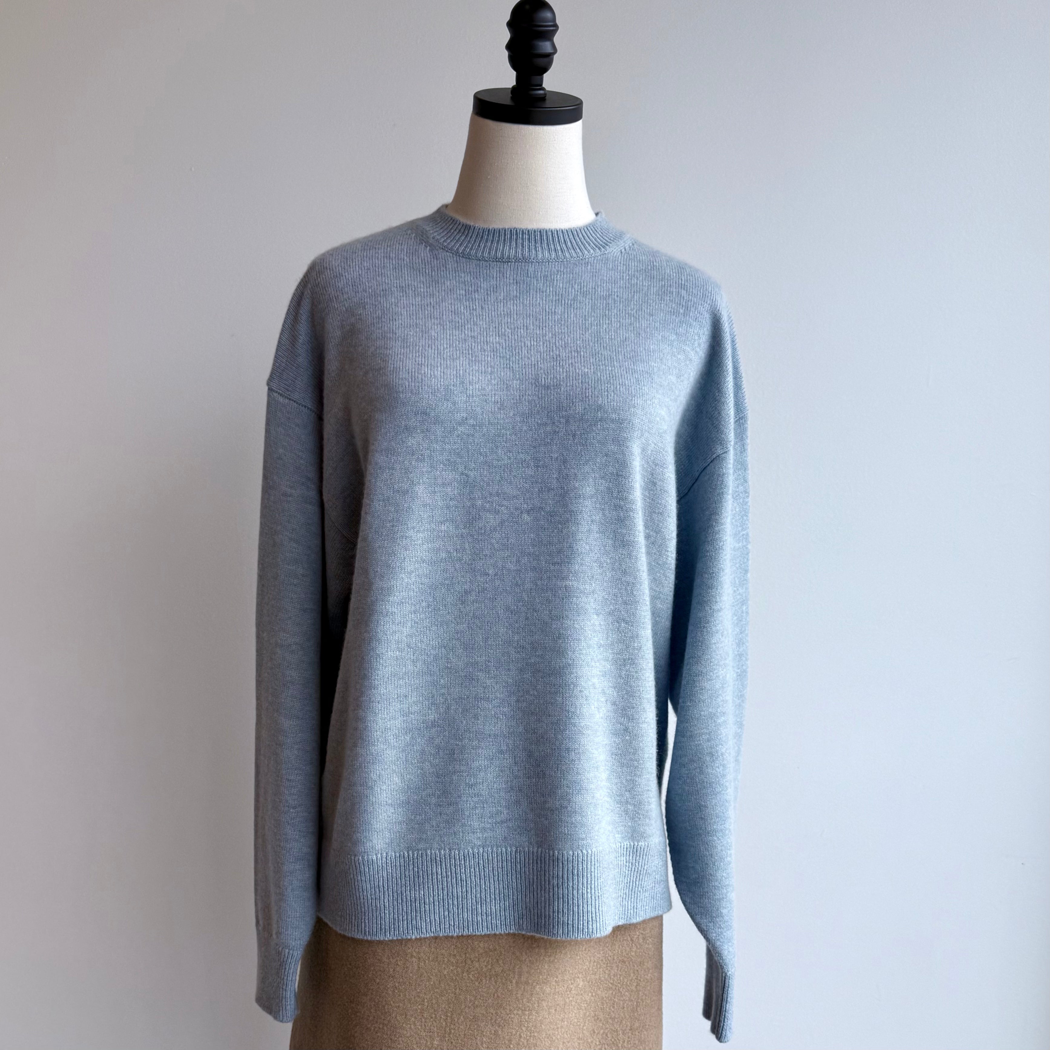 Oversized 2-ply knit sweater with slightly drop shoulder, rib crewneck, hem and cuffs.