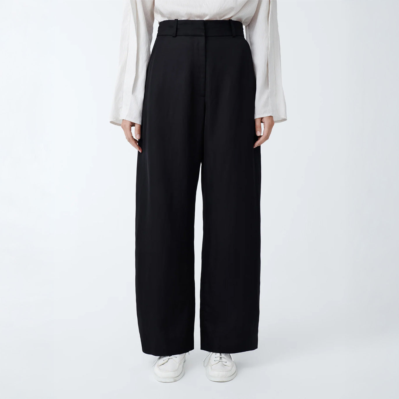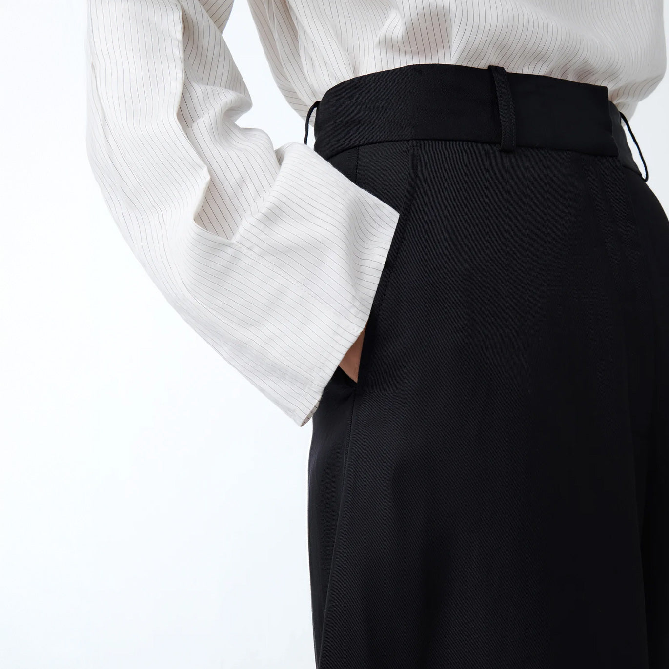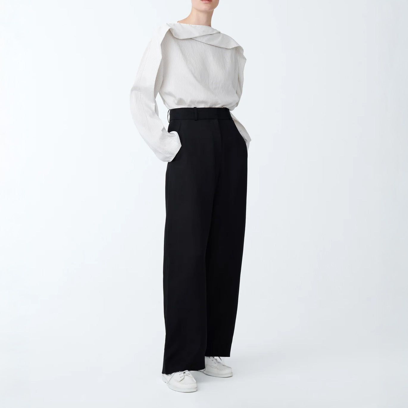 The Myers provide a longer version of SN signature Chalco Pant. With a loose fit and a curved leg, they have a felled hem for easy tailoring. They are made in a viscose-linen blend with a bouncy hand feel and slub texture with a natural crinkle. Designed to be worn at the mid-waist or higher, they feature Italian pockets and a flap pocket at the back.