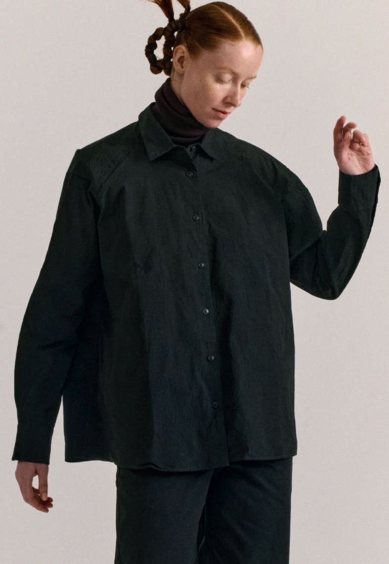 LONG SLEEVE SHIRT IN PAPER COT. DROPPED SHOULDERS. YOKE CUT DETAIL ON THE BACK. COROZO BUTTONS.
