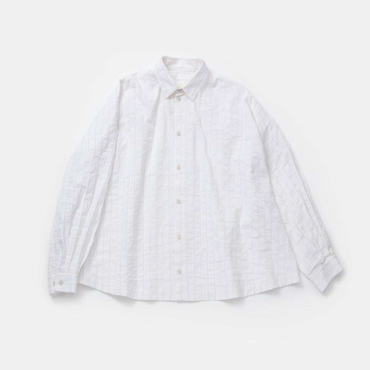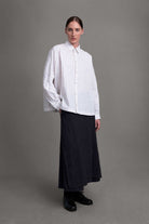 A new boxy, wide unisex shirt, with dropped shoulder, voluminous sleeve and full body.