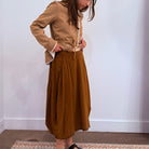 The absolute perfect skirt in linen and silk blend, with side pockets and elasticated back waist and it looks great on nearly everybody!