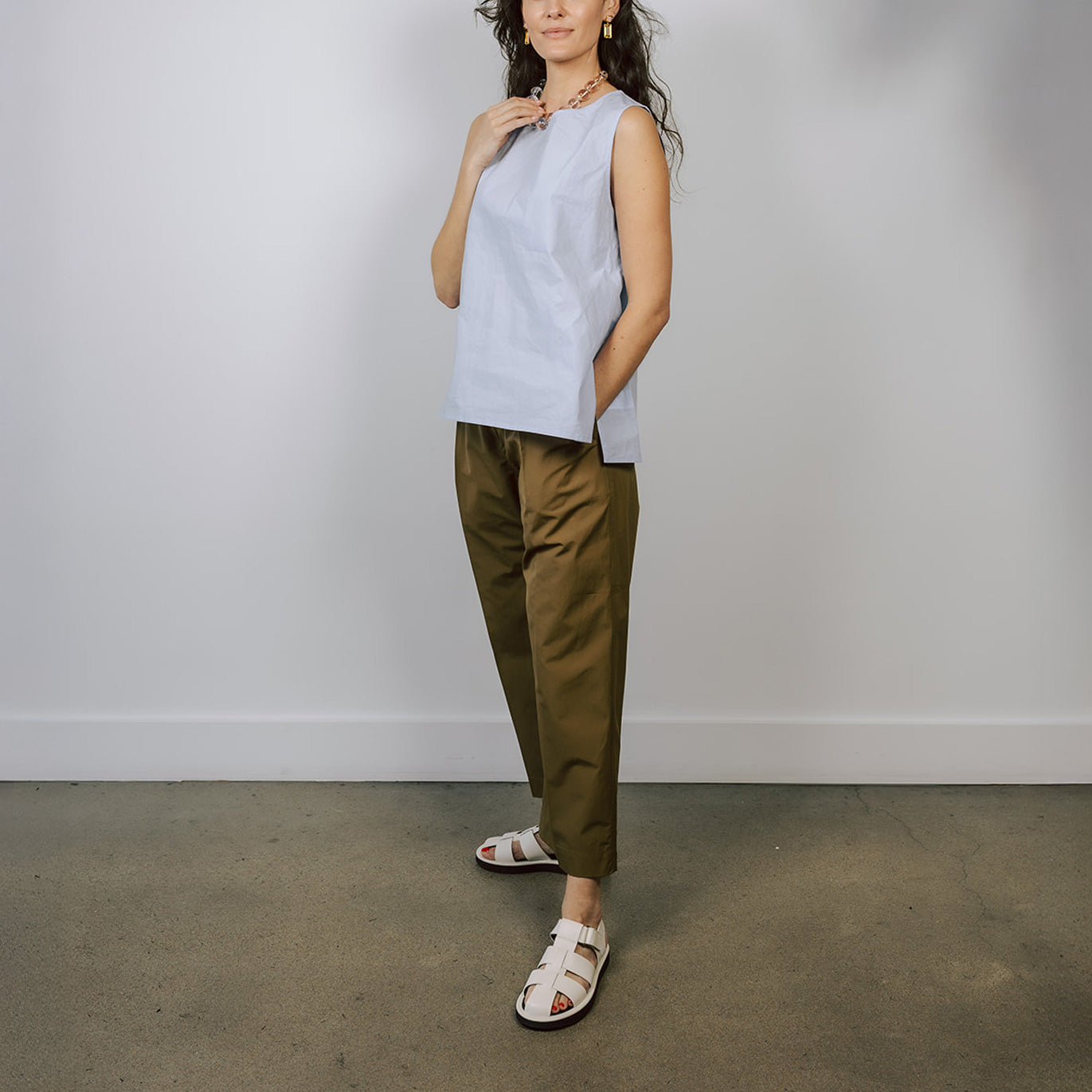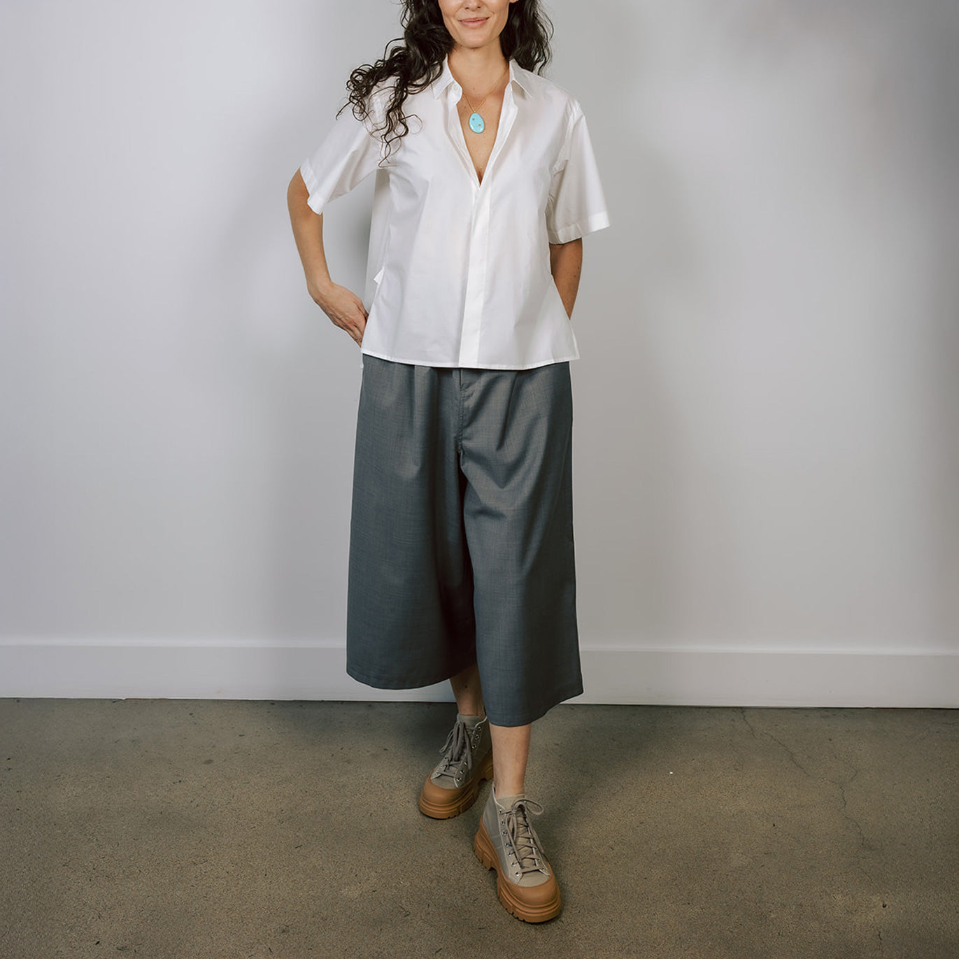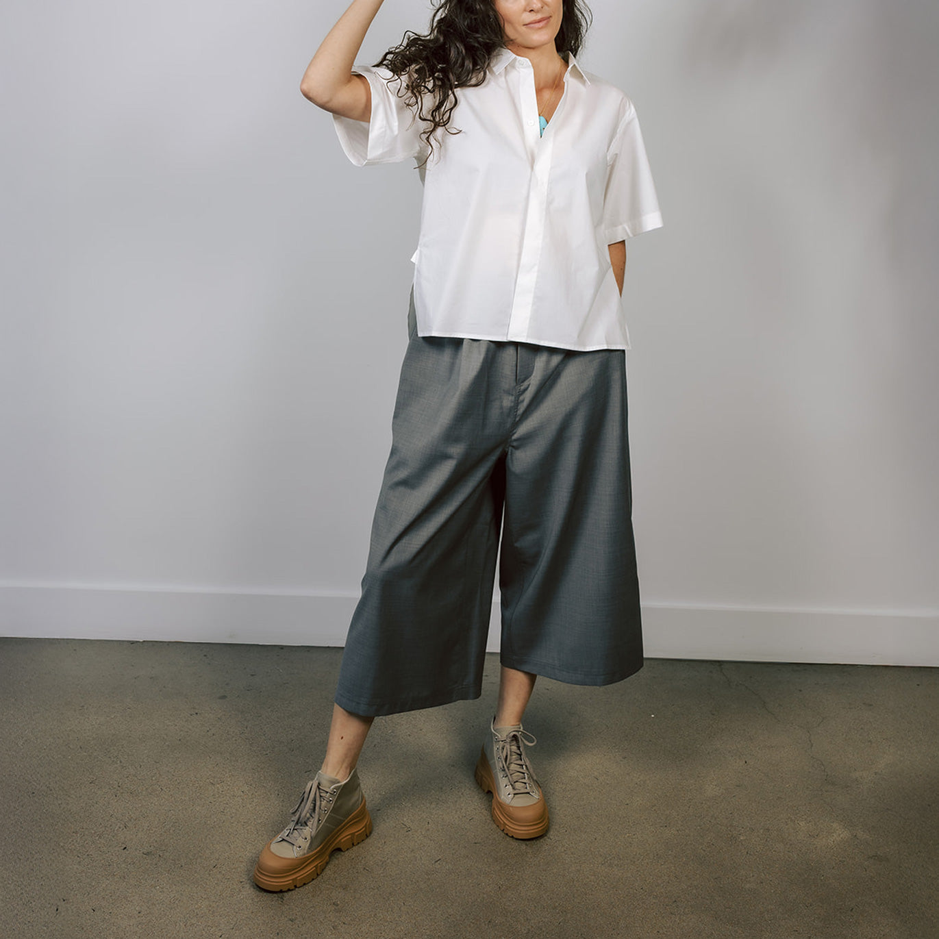 The Belgian designer Sofie D’Hoore studied at the Royal Academy of Fine Arts in Antwerp under Walter Van Beirendonck. Her collections have a purist, understated aesthetic with an emphasis on strong lines, precise cuts and volume. The designer never loses sight of practicalities; she wants to make clothes that one can move in, that are sophisticated, and also suited to the demands of modern life. Sofie D’Hoore is best known for mixing nuanced shapes with innate simplicity to create clothing with an everyday sensibility.