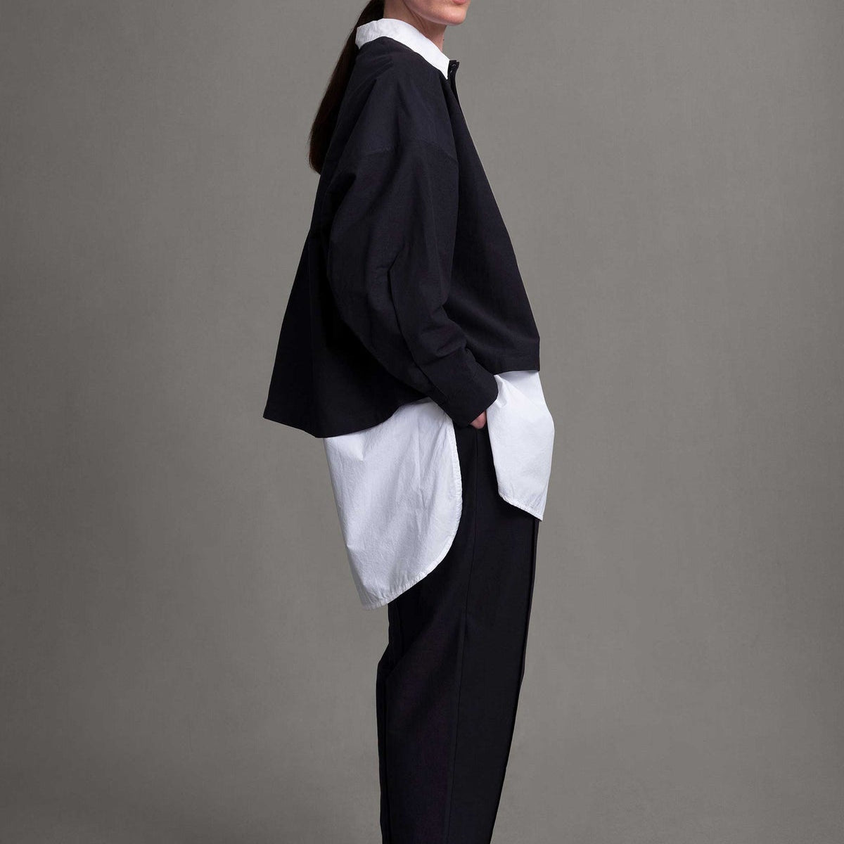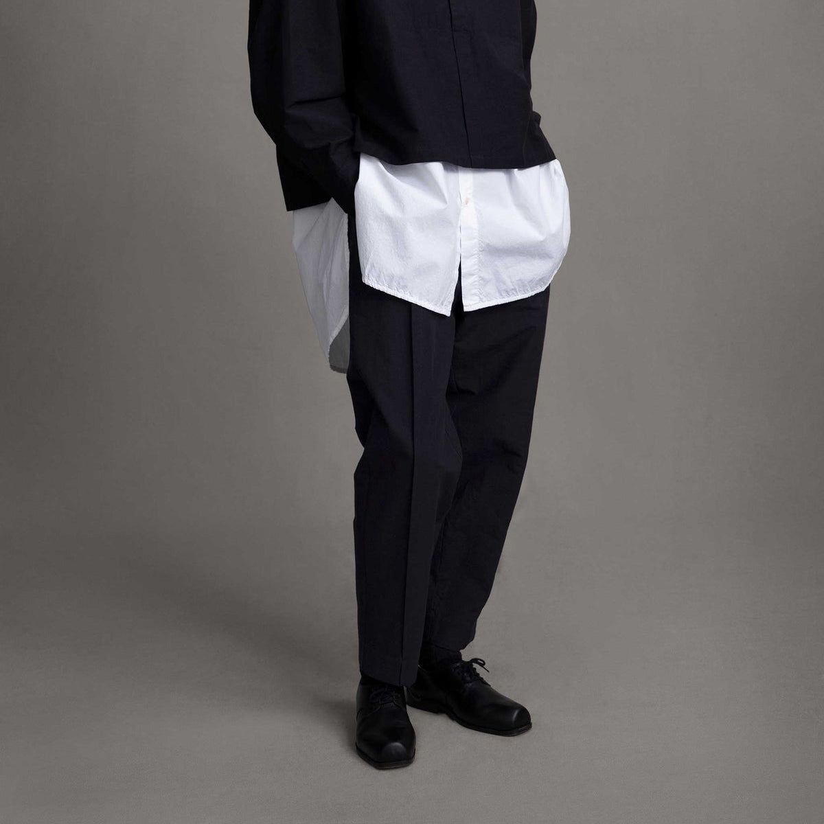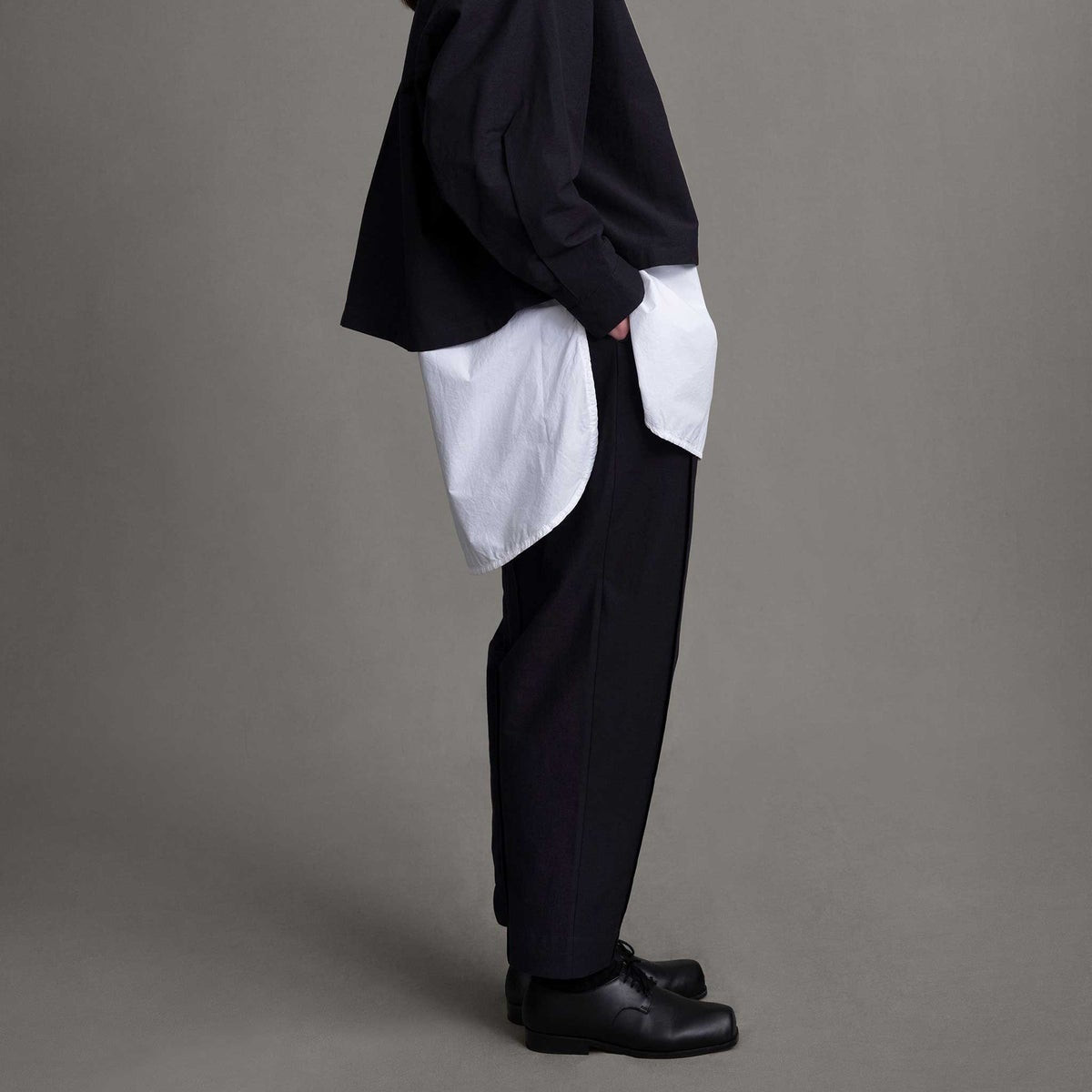 A celebration of craftsmanship has been at the core of the brand from the outset. Each piece takes its name, inspiration and cut from a traditional trade: the ‘Metalworker’ jacket, the ‘Stonemason’ trouser, and so on. Toogood’s clothing is instilled with the unmistakable spirit of both sisters: Faye’s preoccupation with materiality and Erica’s audacious shape-making. One a tinker, the other a tailor.