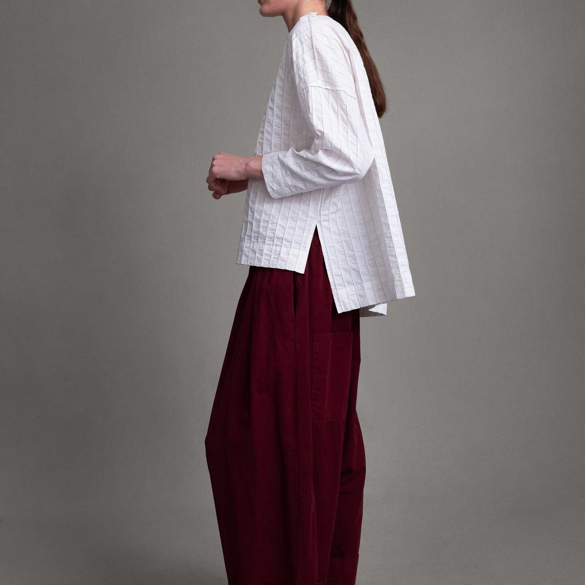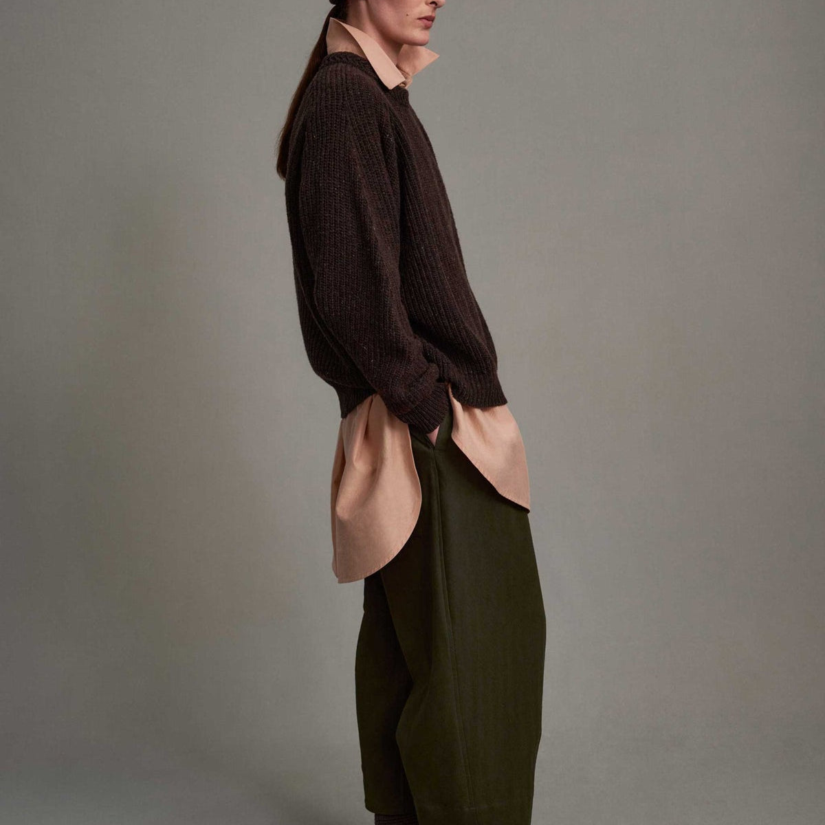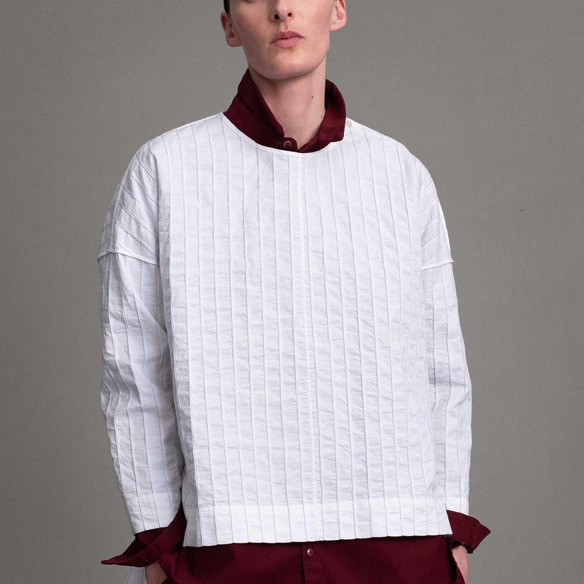 A celebration of craftsmanship has been at the core of the brand from the outset. Each piece takes its name, inspiration and cut from a traditional trade: the ‘Metalworker’ jacket, the ‘Stonemason’ trouser, and so on. Toogood’s clothing is instilled with the unmistakable spirit of both sisters: Faye’s preoccupation with materiality and Erica’s audacious shape-making. One a tinker, the other a tailor.