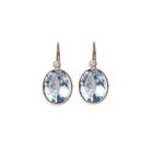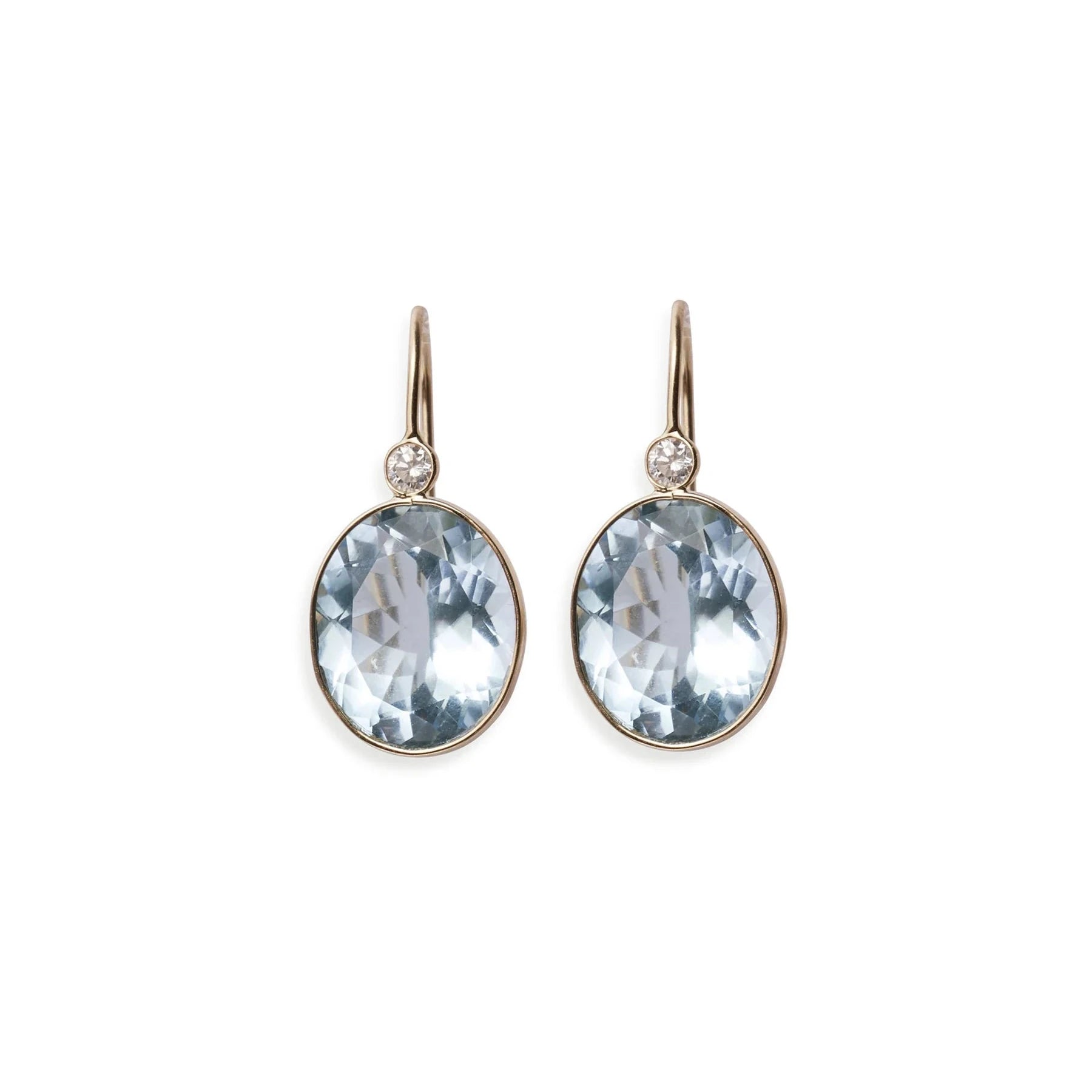These 'Pool' silhouette earrings are classic 14k gold beauties, featuring faceted semiprecious blue topaz ovals with diamond accents.