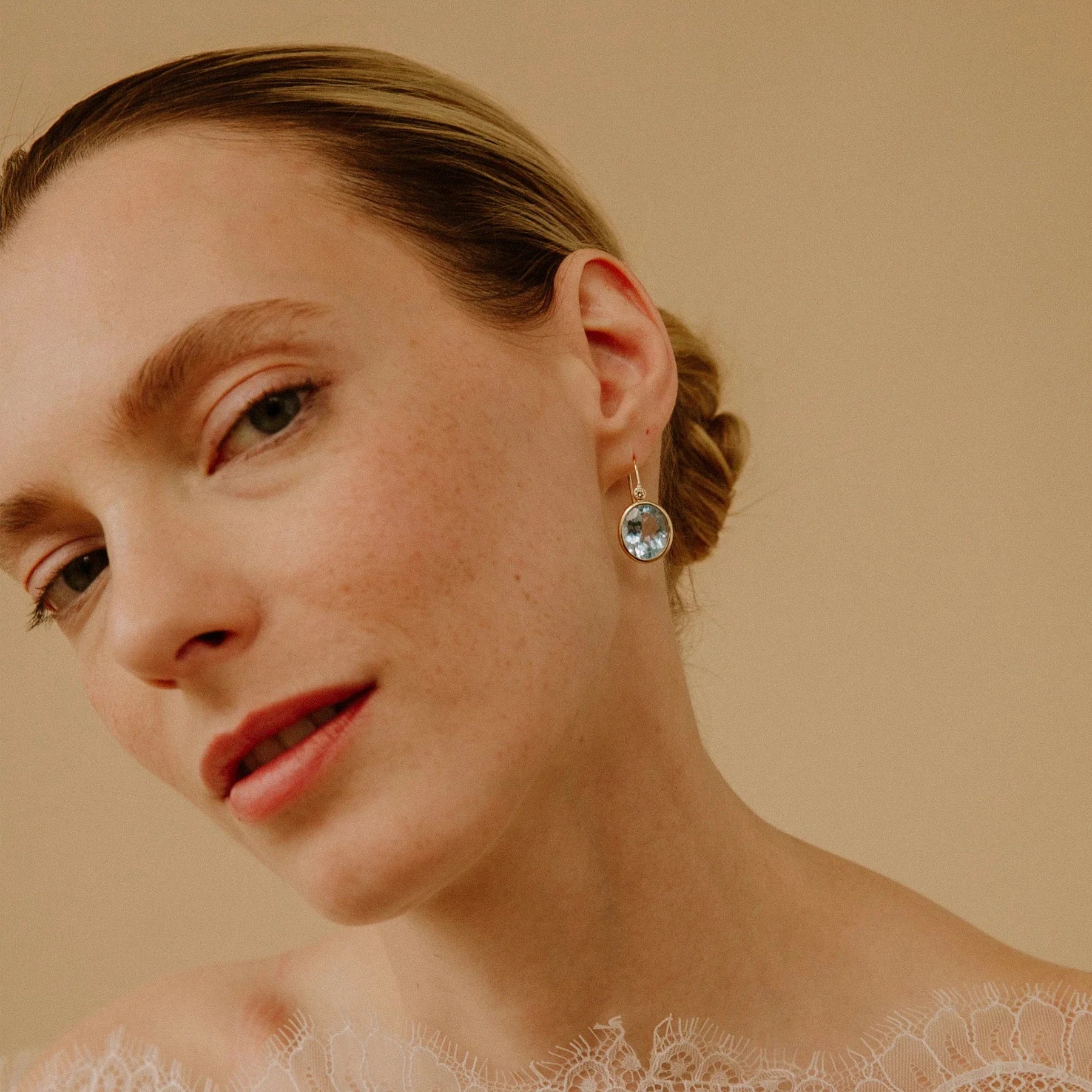 14K Gold Pool Earrings in Blue Topaz & Diamond