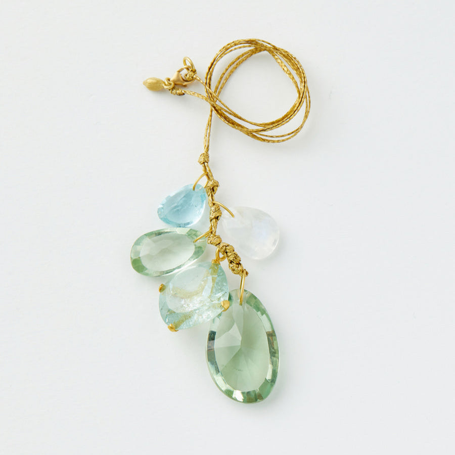 Captivating cluster of mixed stones warmly held by 18kt gold and situated on Pippa's signature gold cord; handmade in Jaipur by master goldsmith Om Prakash.